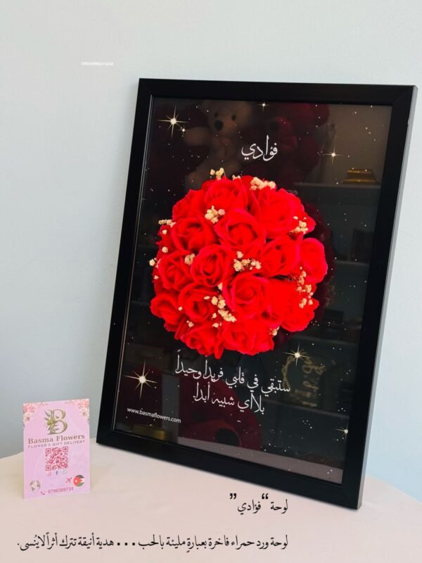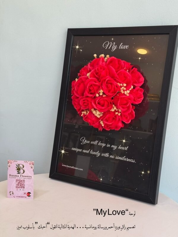 هذه اللوحة المميزة تجمع بين جمال الورود وأناقة البرواز، ويمكنك تخصيصها بالكامل باسم من تحب، تاريخ ذكرى مميزة، أو رسالة قلبية تهمك. سواء كانت هدية لعيد ميلاد، زفاف، أو لمجرد التعبير عن مشاعرك، ستصبح هذه اللوحة ذكرى لا تُنسى تُزين أي مكان. اطلبها الآن وصمم لحظتك الخاصة بطريقة تحكي قصتك!